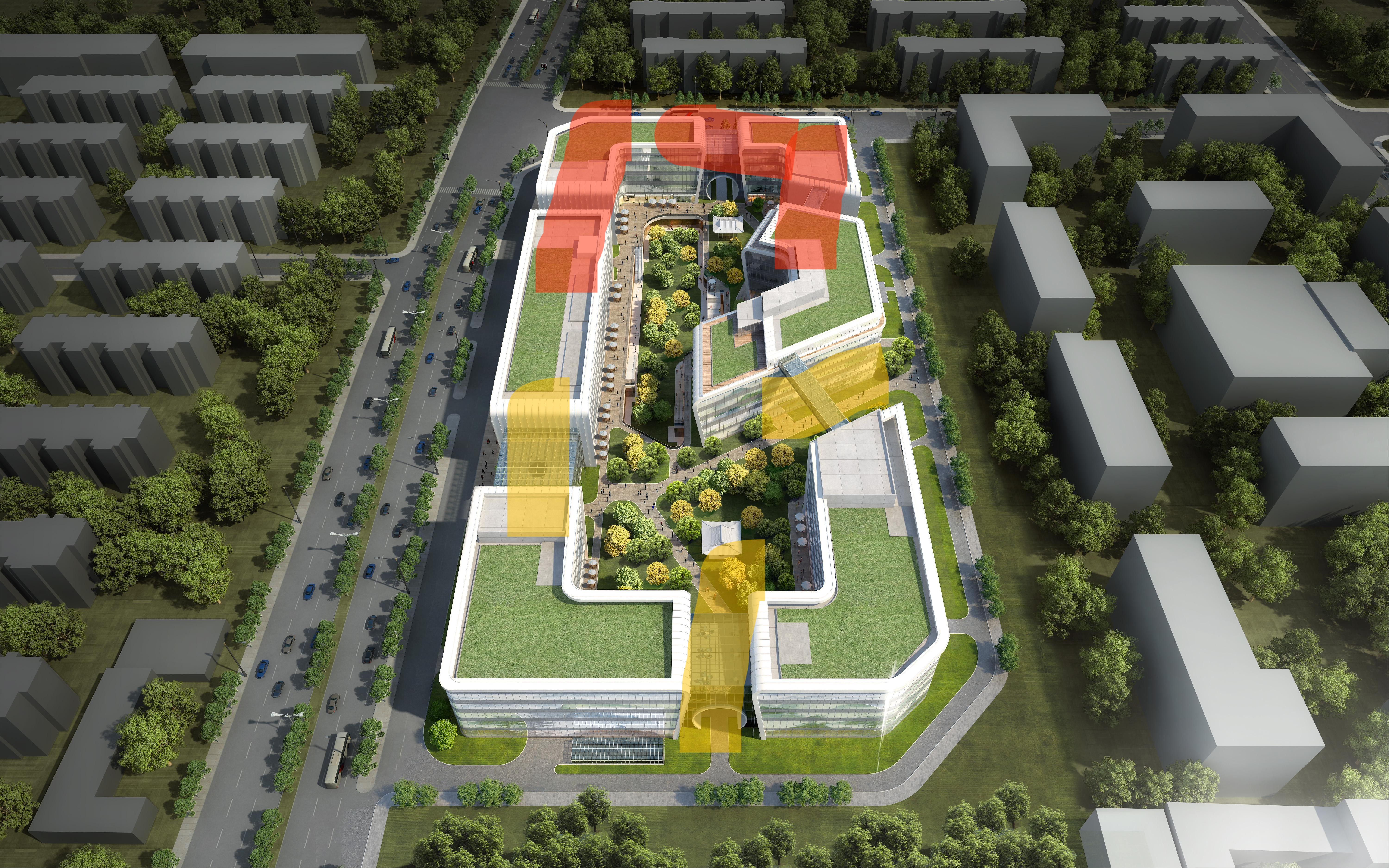 建筑高度28.2m(地下三層;地上6層)